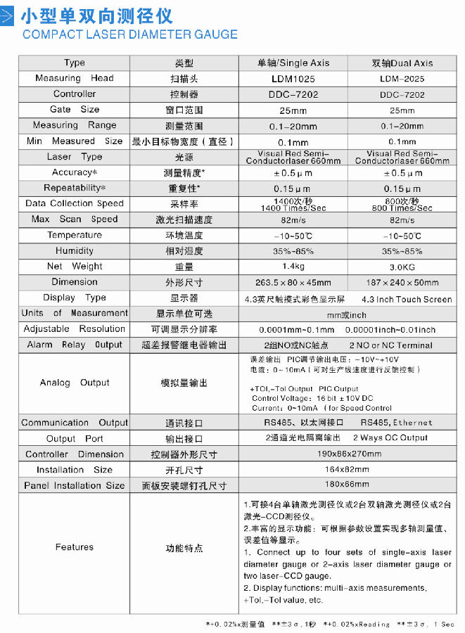新型LDM1025/LDM2025激光測徑儀